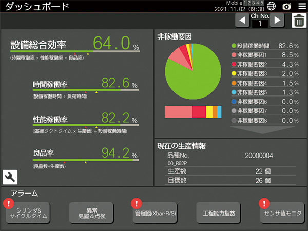 設備総合効率や生産数など、設備の生産・稼働状況を総合表示します。*1
