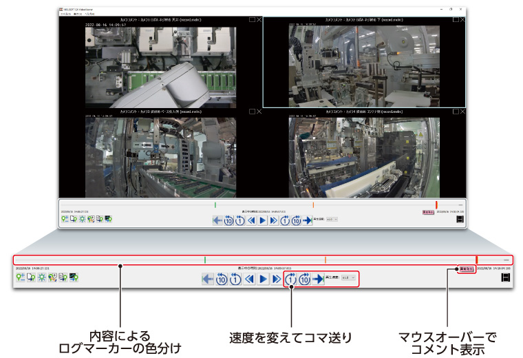 - 異常発生時の各機器の制御データや動画を突き合わせて確認できるため、複数の機器にまたがる異常要因を簡単に解析できます