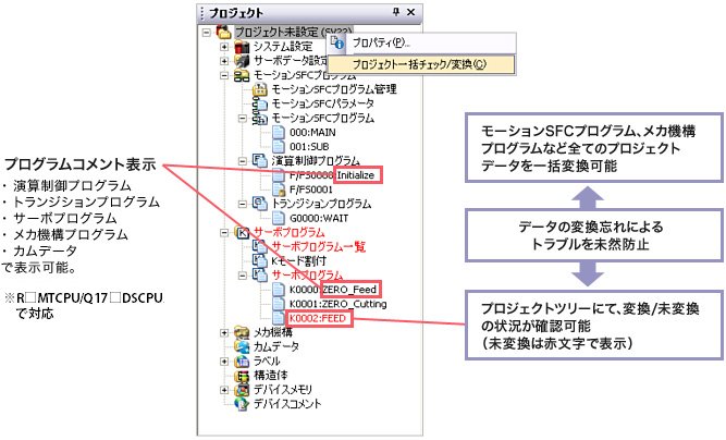 豊富なプロジェクトツリー機能より、モーションSFCプログラム作成を支援します。