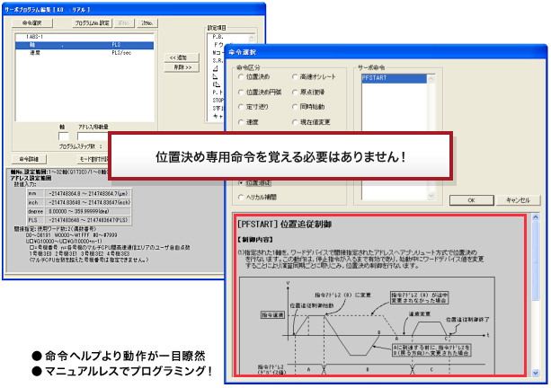 必要なデータ(軸番号・位置決めアドレス・位置決め速度など)を設定するだけでプログラム可能です。