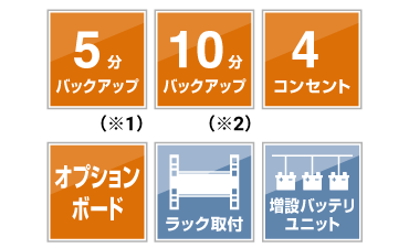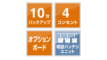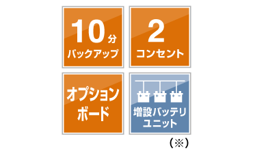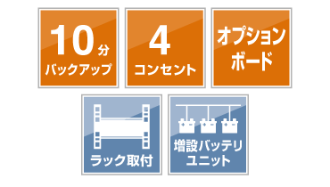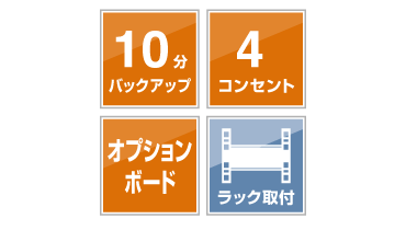 停電補償時間10分、オプションボード・増設バッテリユニット取付可能なコンセント仕様品です。※