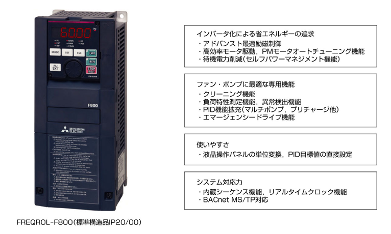 FREQROL-F800シリーズの主な特長を次に挙げる。