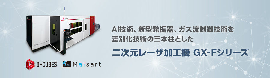 “止まらない加工機” をコンセプトにした新型二次元ファイバレーザ加工機。GX-Fでは高い加工安定性と信頼性、高速加工・低ランニングコスト、省人化と加工の自動化を開発重点項目とし、加工安定性と生産性の向上を実現しました。