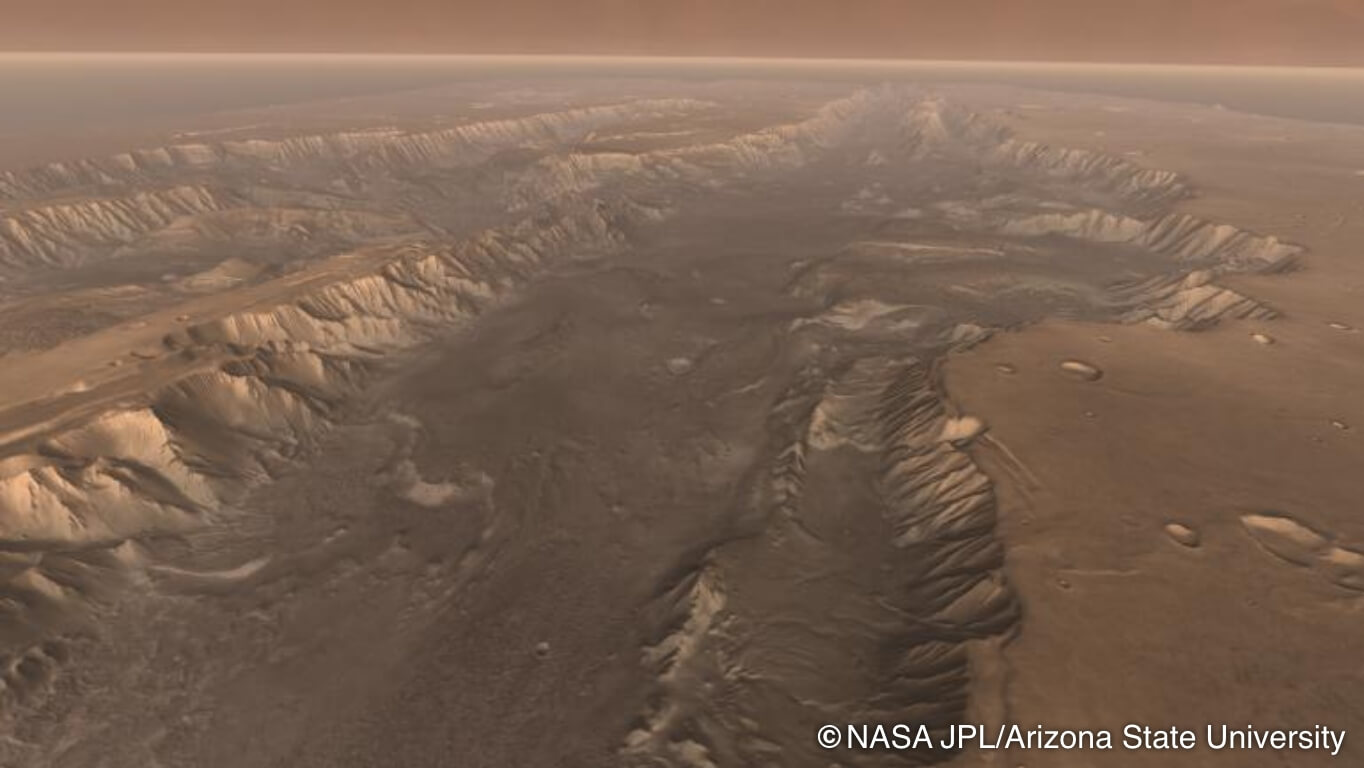 一方で、火星は35億年前に、水の惑星から砂漠の惑星へと変貌を遂げた。火星内部から、火山活動のかたちで、水や大気が補充されなくなってしまったためである。しかしそれがため、火星には35億年前以前の古い地殻が、そのままむき出しに残っている。生命の誕生当時の記録が、火星であれば手に入るのである。