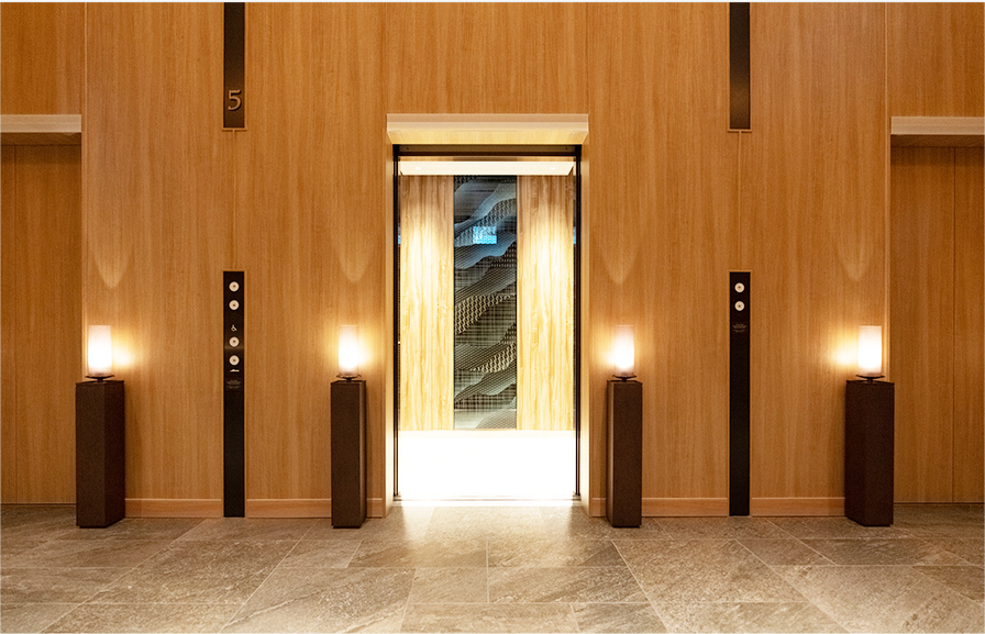 このホテル内には、エレベーターをはじめ、居室内の空調機器など、三菱電機製の設備が採用されており、快適で心地よい空間づくりに貢献しています。