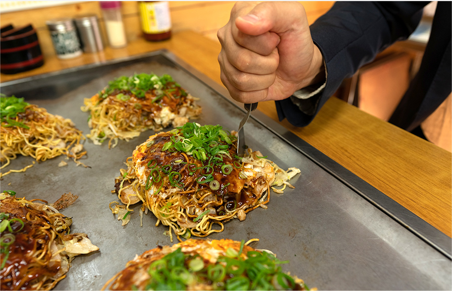 広島市南区皆実町のお好み焼き「ひらの」は、1989年創業の有名店。この店の名物「そばライス」は、36年前、育ち盛りの高校生たちにお腹いっぱい食べてもらいたいとの願いから、お好み焼きにご飯を入れたのが始まり。以来、キャベツたっぷりの肉玉そばのお好み焼きに、ソースを絡めたライスの入った「そばライス」が、一番の人気メニューだそうです。確かにボリューム満点、しかも美味しい!卒業後、プロとして活躍するサッカー選手や野球選手をはじめ、多くの人に愛され続けているのも、うなずけます。