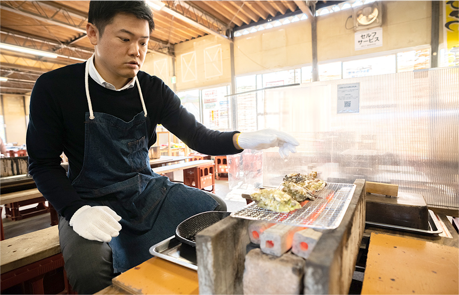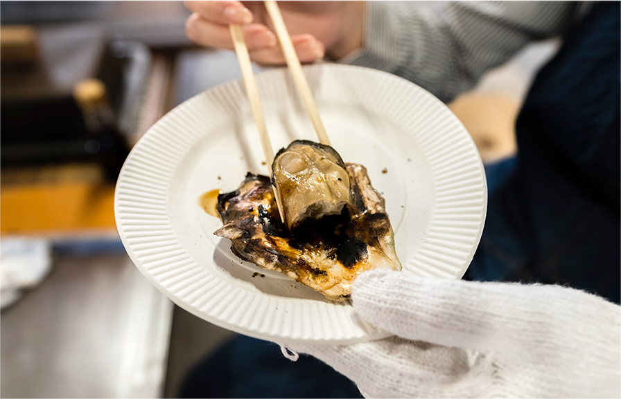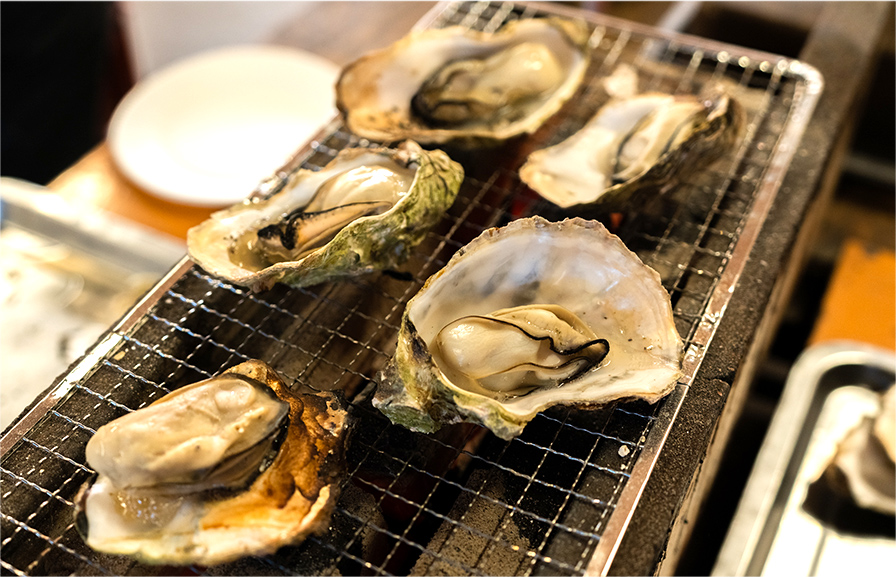 広島の名産といえば、「牡蠣」。冬に向かうこの時期は、牡蠣の美味しい季節。この日、お邪魔した「ミルキー鉄男 かき小屋 宇品店」は、元祖かき小屋ブームの火付け役として知られる有名店。広電の「広島港駅」近くの「広島みなと公園」内にあり、広島県産のジューシーな牡蠣を気軽なバーベキュースタイルで楽しめます。アワビやサザエ、ホタテ、えびなどの新鮮な海鮮素材に加え、お肉や野菜も豊富!浜焼きでいただく、殻付きの牡蠣のぷりぷり&濃厚な味わいは絶品!楽しく&美味しくいただきました。
