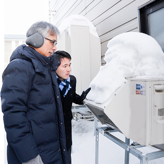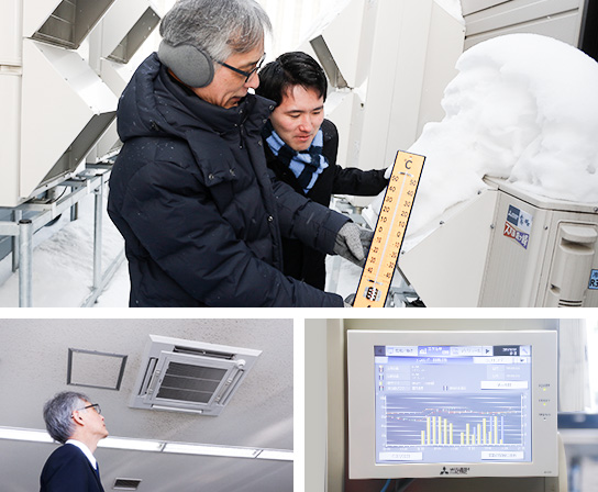 漁島「そうですね。こんな厳寒の地でもしっかり稼働している姿を見ると、安心するのと同時に応援したくなってきますね(笑)。空調という一括りの製品でも、事務所や製造現場、倉庫など、多くの場所で、さまざまな目的に応じた温度管理に役立っていることを改めて感じました。」