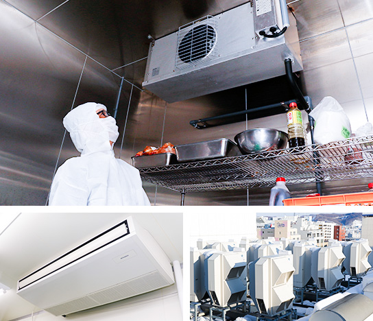 手作りにこだわっているキムチは、全工程において、10℃以下で行うなど、原料管理から製造工程に至るまで、徹底した温度管理と衛生管理の下で製造されています。この温度管理のための空調設備に三菱電機製品が使用されていました!