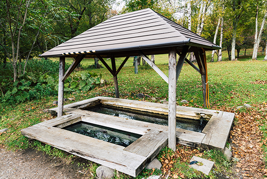 阿寒湖沿いの遊歩道の途中には、湖を眺めながら、湯に浸かれる「弁慶の足湯」があります。その昔、弁慶が足を休めたという湯だという言い伝えから名付けられたそうで、散歩の途中に疲れた足を休めることができる癒しのスポットです。程よい温度に、心まで温まります。