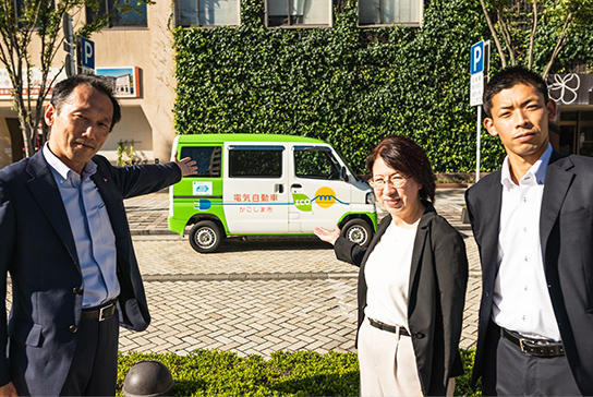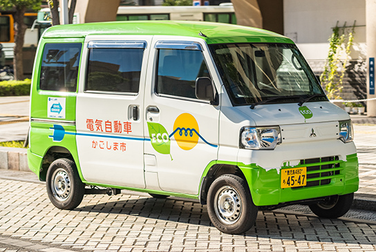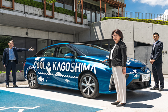 2050年までに、CO2排出実質ゼロ都市を実現する「ゼロカーボンシティかごしま」への挑戦を宣言した鹿児島市では、市公用車として走行時にCO2を排出しない電気自動車や燃料電池自動車を導入しています。