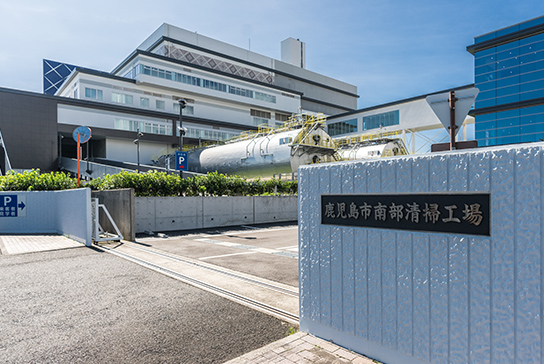 鹿児島市南部地区の燃やせるごみを回収し、ごみ焼却施設220トン/日、バイオガス施設60トン/日の処理能力を備える南部清掃工場。ここは、ごみ焼却で生じる焼却廃熱を利用した高効率発電施設と、生ごみや紙ごみなどの発酵で発生するバイオガスを精製し、都市ガスの原料となるメタンガスとしてガス会社に供給するバイオガス施設の2つの施設を併設し、エネルギーの地産地消を推進しています。運び込まれたごみをクレーンで拡散するごみピットの様子や、850℃以上の高温でごみを燃やす焼却炉内部の様子を映すモニター、微生物を使ってバイオガスをつくる発酵槽、バイオガスからメタンガスを精製するバイオガス精製設備などを見学しました。