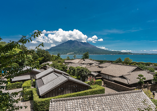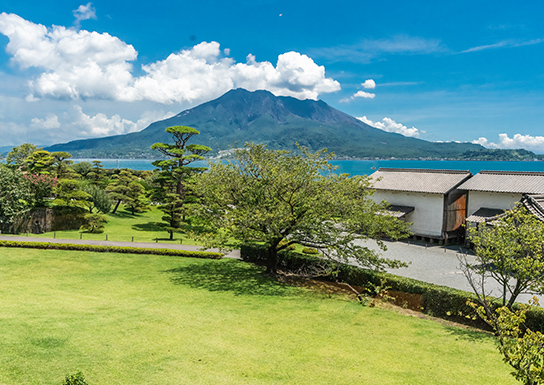 雄大な桜島を望む、名勝「仙巌園」。かつて島津家19代当主の光久によって築かれた別邸で、鹿児島のシンボルでもある桜島を築山に、錦江湾を池に見立てるという壮大な大名庭園。そのスケールの大きさと比類なき美しさには目を見張ります。「南の玄関口」として、海外とのつながりも深かった薩摩。その島津家28代当主の斉彬は、近代化・工業化の道へ踏み出すことで、近代日本の礎を築き、技術立国としての原点ともなりました。その歴史とカーボンニュートラル実現に向けた活動を展開する鹿児島の動きは、どこかで通底しているようにも思えます。