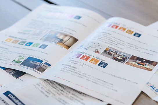 久永/そうです。SDGsのスタートが2016年。当社は2018年頃にSDGsについて学び始め、2019年から事業計画に落とし込んでいきました。周りは、SDGsって何?という雰囲気だったので、まずSDGsの「バッジ」を胸につけるところから始めました。すると、必ずお客様から、「それは何ですか?」と聞かれるので、社員は応えなければなりません。そこで、SDGsの取り組みをパンフレットにまとめ、