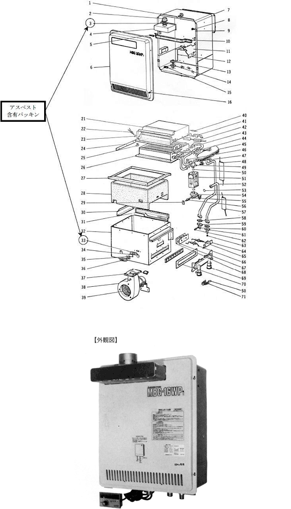 アスベスト含有部品の使用箇所:ガス給湯ボイラ