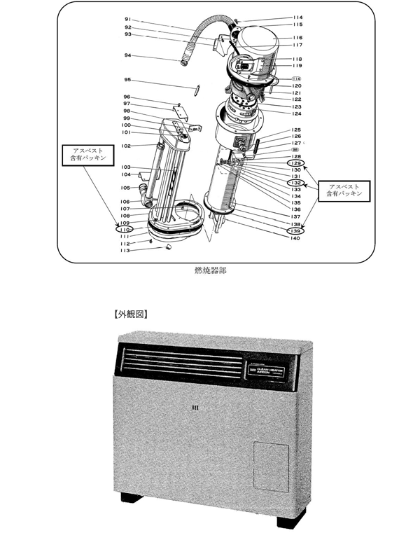 アスベスト含有部品の使用箇所:ガスFFエアコン(ガスクリーンヒーターエアコン)