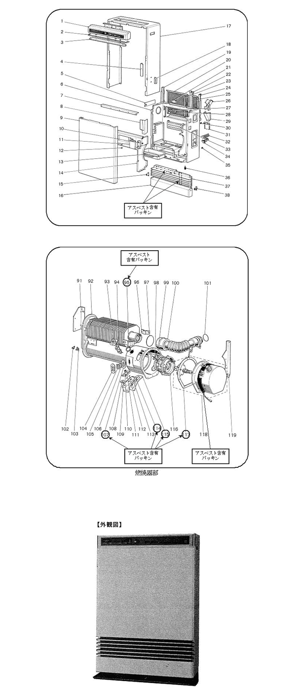 アスベスト含有部品の使用箇所:石油FFエアコン(石油クリーンヒーターエアコン)