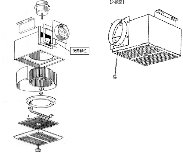 アスベスト含有部品の使用箇所:ダクト用換気扇(パッキン)