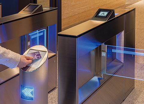 セキュリティーゲートでIDカードをカードリーダーにかざす。