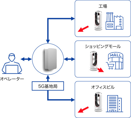 ローカル5Gを活用してロボットを遠隔操作することによりロボットを働き手として利用。工場やショッピングモール、オフィスビルなどでの業務効率化・省人化に貢献します。