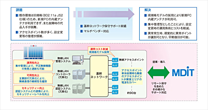今回導入いただいた集中管理型無線LANシステムにより、ネットワーク品質が大きく向上し、業務の効率化を実現すると共に管理負荷が大幅に軽減しました。 また、障害が起きた場合も故障箇所の特定が容易となり、早期復旧が可能です。ネットワークセキュリティーについても、より強固なものとなりました。