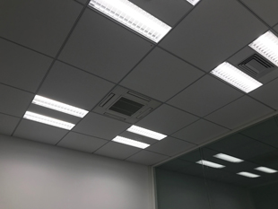 ショールームエリアへの導入に加えて、執務エリアでは自由なレイアウト変更を可能にするグリッド天井用照明も導入いただいております。