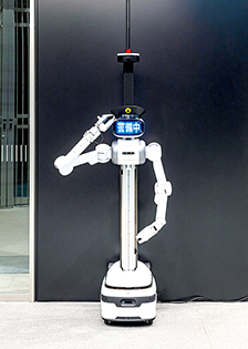 エレベーターを利用した上下階移動や入退館システムとの連携によるセキュリティエリアを跨いだ自律移動を行う警備ロボット |