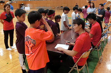 クリニック終了後は、ドルフィンズ ・コアラーズ選手のサイン会が行われ、選手・コーチと児童たちの良き交流場となりました。