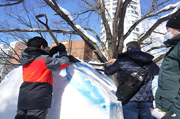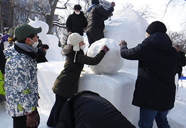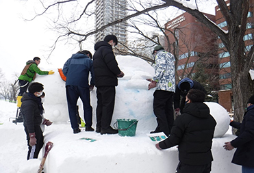 「第73回さっぽろ雪まつり」(2/4~2/11)で展示される市民雪像の制作を行いました。 当日は氷点下の中、途中雪が降りしきることもありましたが、若手からベテランまで多くの社員とその家族総勢35名が協力しながら熱心に作業を行いました。 札幌の冬の一大イベントへの参加、北海道の自然との触れ合いを通じて、地域の方々とも親睦を深めることができました。 当社作成の雪像は市民の方々からも大人気でした。