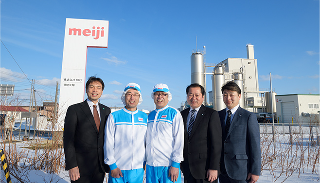 - 私は明治稚内工場の事をいつまでも素晴らしい工場でいていただきたいと思っています。工場をより良くするためにどんどん新しい良いものを提案させていただき、お互いの発展に繋がれば良いと思っています。その役目を私が担えるように動いていく所存です。これからも変わらぬお付合いをよろしくお願いいたします。