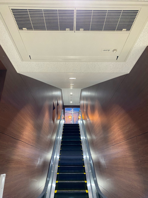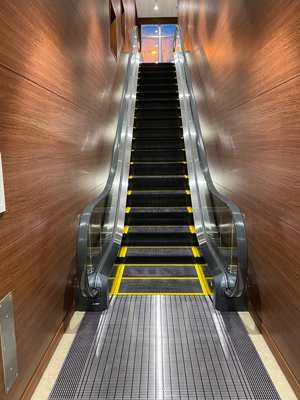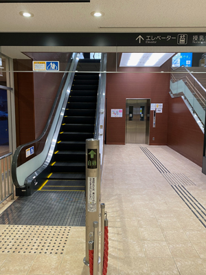 既存の1階からの上り用エスカレーターに加えて、今回は2階からの下り用エスカレーターを増設しました。 |
