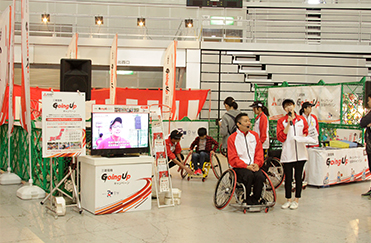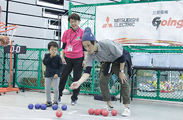 本活動の一環として、2019年11月3日(日)に福井県越前市において開催された「日本全国グルメ博 in サンドーム福井」内で、「三菱電機 Going Up キャンペーン 全国キャラバン in 福井」を開催しました。障がい者スポーツ体験コーナーを設置し、車いすバスケットボールとボッチャの体験会を実施し、