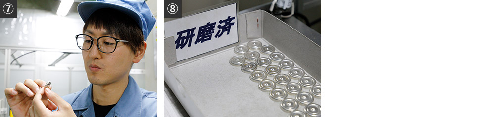 目視でチェックし(⑦)、研磨工程終了(⑧)。