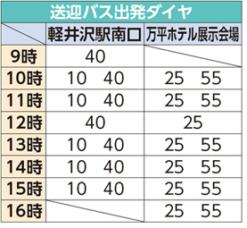 [お車をご利用の場合] 軽井沢駅南口から9:40~15:40の間30分間隔で送迎バスを運行します。