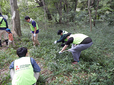 今年で8年目を迎えた同活動には、関越地域の従業員とその家族を含めた23名が参加し、絶滅危惧種「キンラン」の保全の為、雑木林に茂る下草などを刈ったり、公園内の動植物についての学習を行いました。