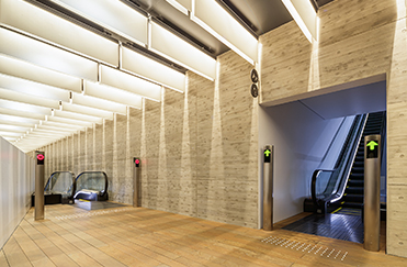 順路導線を確保するエスカレーター、1階から3階の縦導線を確保するエレベーターを設置しています。