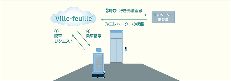 ロボットのリクエストに応じて、エレベーターの呼び登録・配車を実行します。 |
