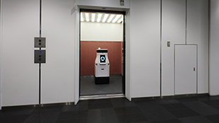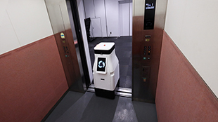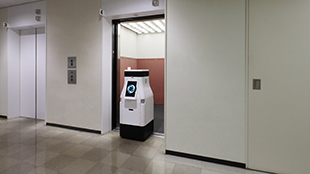 1. エレベーターとロボットを連携させ、建物内におけるロボットの縦移動を実現。1台のロボットが行える作業量が増加。