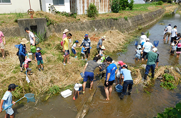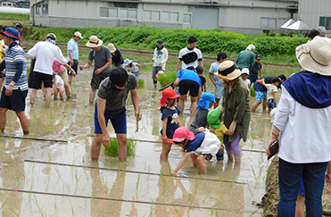 今年は6月22日(土)に開催し、社員とその家族54名が参加しました。泥だらけになりながら夢中になって苗を植えたり、川でたくさんの生き物と触れ合ったり、自然を満喫する1日となりました。