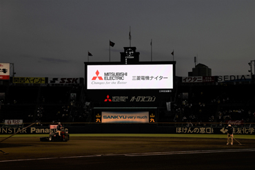 会場では阪神タイガースのマスコットキャラクターとのじゃんけん大会や、三菱電機が納入したオーロラビジョンでのCM放映などのイベントが催され、球場の熱戦を盛り上げました。