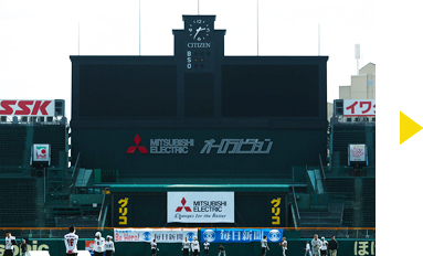 2019年8月で95周年を迎える阪神甲子園球場に大型映像装置「オーロラビジョン」を納入しました(当社製のメインビジョンとバックネット裏サブビジョンを改修)。