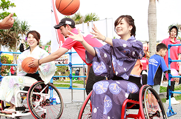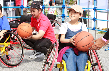 障がい者スポーツ体験コーナーを設置し、車いすバスケットボールやボッチャ(※)の体験会を実施しましたが、車いすバスケットボールの体験会に137名、ボッチャの体験会に182名の計319名の参加があり、これらのスポーツを身近に感じていただきました。