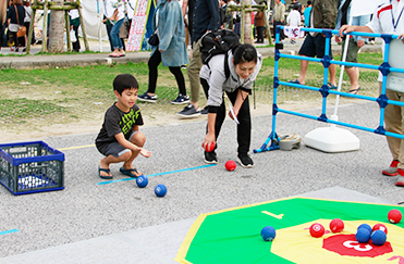 (※)ボッチャは、2チームに分かれて目標となる白いボールに、赤・青のそれぞれ6球ずつのボールを投げたり、転がしたり、他のボールを当てたりして、いかに自チームの色のボールを近づけるかを競う競技です。