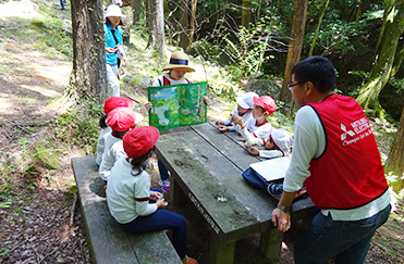 当社は、自然共生社会の実現に向けた「環境マインド育成」の施策として、事業所のある地域の公園や森林、河川などそれぞれのフィールドで社員がリーダーとなり、保育園児とともに自然を体感する「みつびしでんき野外教室」を展開、九州地区では2008年からスタートして今年で12年目となります。ご招待した保育園児たちの環境マインド醸成のお手伝いが自然観察を通してできればと考えています。今後も本活動により、自然共生社会の実現と環境マインドの育成に取り組んで参ります。
