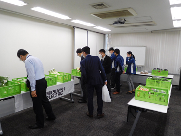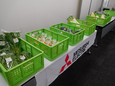 当社は2017年7月5日に発生した九州北部豪雨災害に対する継続支援や風化防止を目的として、福岡県朝倉市の道の駅より仕入れた季節の野菜や果物、人気の加工品などを社内販売しています。毎回たくさんの従業員がマルシェに参加し、完売しています。