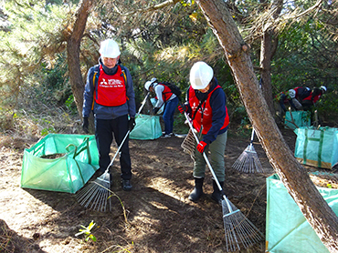 今回の活動には、九州支社従業員と九州地区関係会社従業員、そのご家族を含む計80名が参加し、「海岸清掃」、「松林清掃」、「野外教室」の3グループに分かれ、活動しました。