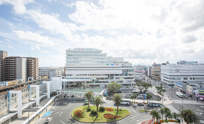 宮崎駅高千穂口(西口)にて九州旅客鉄道㈱様と宮崎交通㈱様が共同開発された「JR宮交ツインビル」。宮崎のみなさまに新たな生活をご提案する商業施設アミュプラザみやざき(うみ館・やま館)とオフィスフロアからなる大型複合施設で、エレベーター10台を採用いただいています。