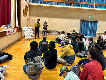 王越町は海も山も近く、里海保全と里山保全の両方を一度に学べる自然豊かな場所です。午前中は、香川県海岸漂着物対策活動推進員(愛称:かがわ海ごみリーダー)の方々にご協力いただき、海ごみ問題とビーチコーミング(単なるゴミ拾いではなく、漂着物を観察したり収集の対象として楽しむ活動)についてお話をしていただき、これまでかがわ海ごみリーダーが収集したオモチャや日用品などの海ゴミを見せていただきました。