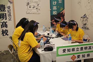 第1試合「バディ」、第2試合「白」というテーマで競技が行われ、審査員(プロ漫画家・弊社四国支社長 他)による協議の結果、「三菱電機賞」は愛知県立豊明高等学校の「バディ」をテーマに描いた作品が受賞。副賞として当社製空気清浄・脱臭機能付き除湿機『美空感』を贈呈しました。