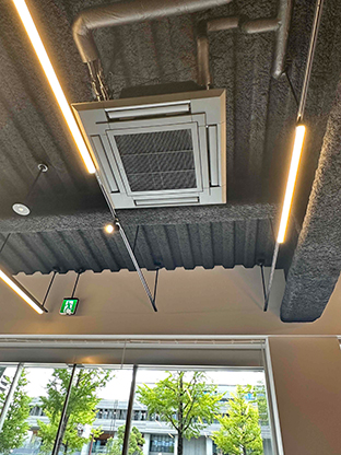 今回ご採用いただいた「パッケージエアコン」は、内装やインテリアに合わせてパネルカラーの選択が可能で、1階飲食店テナント部分には空間イメージに合わせてブラックをお選びいただきました。